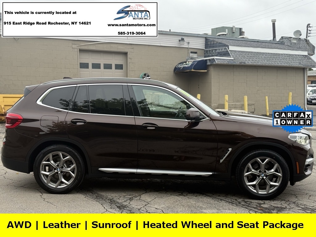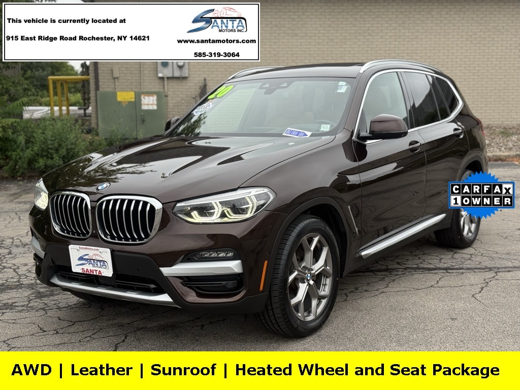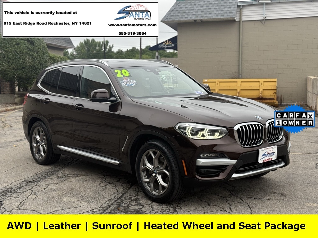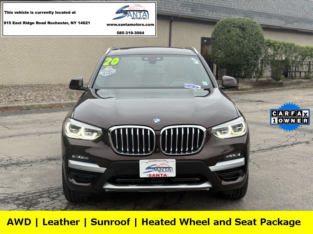 8-Speed Automatic, 12 Speakers, 3.385 Axle Ratio, 4-Wheel Disc Brakes, ABS brakes, ACC Stop & Go + Active Driving Assistant, Active Blind Spot Detection, Active Park Distance Control, Adaptive Full LED Lights, Air Conditioning, Alloy wheels, AM/FM radio, Ambient Lighting, Apple CarPlay Compatibility, Apple CarPlay Compatibility with 1-year trial, Auto-dimming door mirrors, Auto-dimming Rear-View mirror, Automatic High Beams, Automatic temperature control, BMW Assist eCall, BMW TeleServices, Brake assist, Bumpers: body-color, Comfort Access Keyless Entry, Connected Package Plus, Connected Package Pro, ConnectedDrive Services, Delay-off headlights, Driver door bin, Driver vanity mirror, Dual front impact airbags, Dual front side impact airbags, DVD Area Coding (North America), Electronic Stability Control, Emergency communication system: BMW Assist eCall, Extended Collision Mitigation, Exterior Parking Camera Rear, Four wheel independent suspension, Front anti-roll bar, Front Bucket Seats, Front Center Armrest, Front dual zone A/C, Front fog lights, Front reading lights, Fully automatic headlights, Garage door transmitter, Genuine wood dashboard insert, Genuine wood door panel insert, Gesture Control, Hands-Free Bluetooth & USB Audio Connection, Head-Up Display, Heated door mirrors, Heated Front Seats, Heated Steering Wheel, Hi-Fi Sound System, Illuminated entry, Knee airbag, Lane Departure Warning System, Live Cockpit Pro w/Navigation, Low tire pressure warning, Lumbar Support, Memory seat, Navigation, Navigation System, Occupant sensing airbag, Outside temperature display, Overhead airbag, Panic alarm, Panoramic Moonroof, Parking Assistant Plus, Passenger door bin, Passenger vanity mirror, Power door mirrors, Power driver seat, Power Front Seats, Power Liftgate, Power passenger seat, Power steering, Power windows, Radio Control US, Radio data system, Radio: AM/FM Stereo w/HD, Rain sensing wipers, Rear air conditioning, Rear anti-roll bar, Rear reading lights, Rear seat center armrest, Rear window defroster, Rear window wiper, Rear-View Camera, Remote keyless entry, Roof rack: rails only, Security system, SensaTec Upholstery, SiriusXM Satellite Radio, Speed control, Speed-sensing steering, Speed-Sensitive Wipers, Split folding rear seat, Spoiler, Sport Bucket Seats, Sport steering wheel, Steering wheel mounted audio controls, Surround View w/3D View, Tachometer, Telescoping steering wheel, Tilt steering wheel, Traction control, Trip computer, Turn signal indicator mirrors, Variably intermittent wipers, Wheels: 18" x 7.0" Y-Spoke (Style 688), Wheels: 19" x 7.5" Y-Spoke (Style 693), 8-Speed Automatic. Brown Metallic 2020 BMW X3 xDrive30i AWD 8-Speed Automatic 2.0L I4 TwinPower Turbo