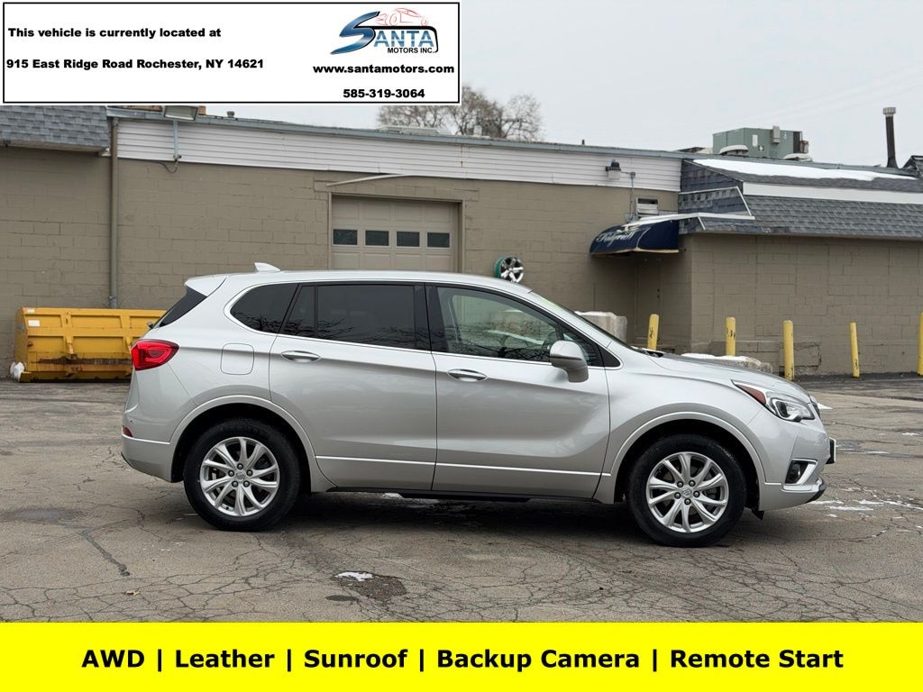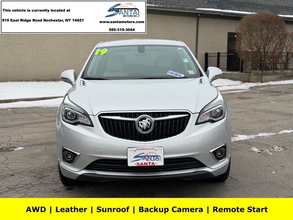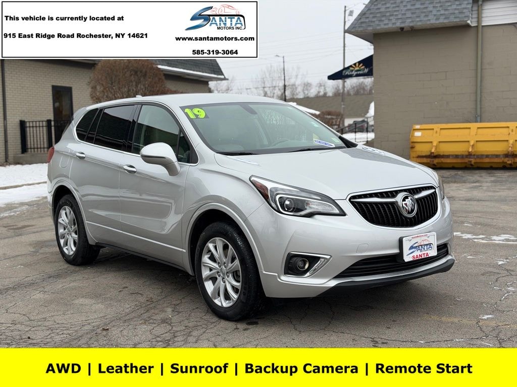 3.50 Final Drive Axle Ratio, 4-Wheel Disc Brakes, 6 Speakers, 6-Speaker Audio System Feature, ABS brakes, Air Conditioning, All-Weather Cargo Mat (LPO), All-Weather Floor Mats, Alloy wheels, AM/FM radio: SiriusXM, Apple CarPlay/Android Auto, Auto-dimming door mirrors, Auto-dimming Rear-View mirror, Automatic temperature control, Brake assist, Buick Interior Protection Package (LPO), Bumpers: body-color, Cloth w/Leatherette Seat Trim, Compass, Delay-off headlights, Driver 8-Way Power Seat Adjuster, Driver door bin, Driver vanity mirror, Dual front impact airbags, Dual front side impact airbags, Electronic Stability Control, Emergency communication system: OnStar and Buick connected services capable, Exterior Parking Camera Rear, Four wheel independent suspension, Front anti-roll bar, Front Bucket Seats, Front Center Armrest, Front dual zone A/C, Front fog lights, Front Passenger 8-Way Power Seat Adjuster, Front reading lights, Fully automatic headlights, Garage door transmitter, Heated door mirrors, Heated Driver & Front Passenger Seats, Heated front seats, High-Intensity Discharge Headlights, Illuminated entry, Knee airbag, Leather Shift Knob, Low tire pressure warning, Occupant sensing airbag, Outside temperature display, Overhead airbag, Overhead console, Panic alarm, Passenger door bin, Passenger vanity mirror, Power door mirrors, Power driver seat, Power Liftgate, Power passenger seat, Power steering, Power windows, Preferred Equipment Group 1SD, Radio data system, Radio: Buick Infotainment System AM/FM Stereo, Rear anti-roll bar, Rear reading lights, Rear seat center armrest, Rear side impact airbag, Rear window defroster, Rear window wiper, Remote keyless entry, Security system, SiriusXM Radio, Speed control, Speed-sensing steering, Split folding rear seat, Spoiler, Steering wheel mounted audio controls, Tachometer, Telescoping steering wheel, Tilt steering wheel, Traction control, Trip computer, Turn signal indicator mirrors, Variably intermittent wipers, Wheels: 18" 10-Spoke Painted Aluminum. Galaxy Silver Metallic 2019 Buick Envision Preferred AWD 6-Speed Automatic 2.5L 4-Cylinder DGI DOHC VVT