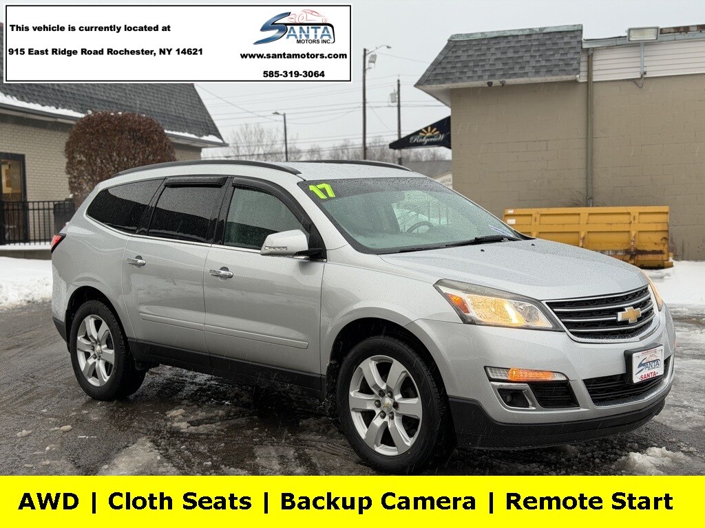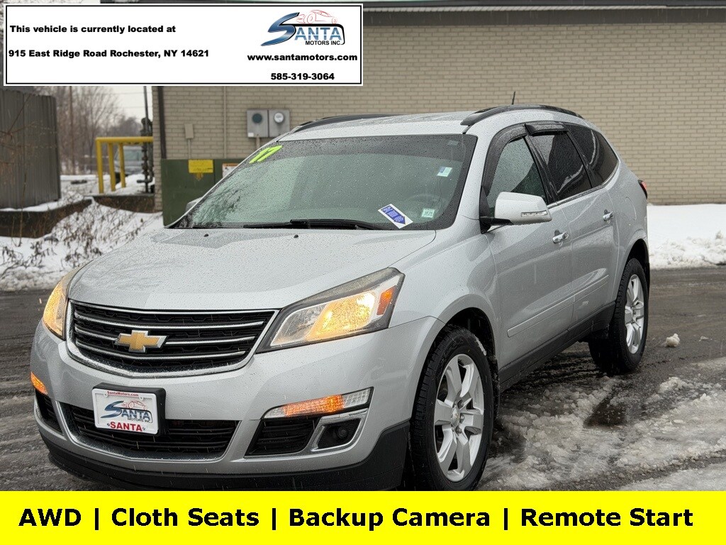 AWD, 18" x 7.5" Machined Aluminum Wheels, 3.16 Axle Ratio, 3rd row seats: split-bench, 4-Wheel Disc Brakes, 6 Speakers, 7-Passenger Seating (2-2-3 Seating Configuration), 8-Passenger Seating (2-3-3 Seating Configuration), 8-Way Power Driver Seat w/Power Lumbar, ABS brakes, Air Conditioning, Alloy wheels, AM/FM radio: SiriusXM, Bluetooth® For Phone, Body-Color Bodyside Moldings, Body-Color Heated Power-Adjustable Outside Mirrors, Bodyside moldings, Brake assist, Bumpers: body-color, CD player, Compass, Delay-off headlights, Driver door bin, Driver vanity mirror, Dual front impact airbags, Dual front side impact airbags, Electronic Stability Control, Emergency communication system, Enhanced Driver Information Center, Exterior Parking Camera Rear, Four wheel independent suspension, Front anti-roll bar, Front Bucket Seats, Front Center Armrest w/Storage, Front Fog Lamps, Front fog lights, Front License Plate Bracket Mounting Package, Front reading lights, Frontal & Side-Impact Airbags, Fully automatic headlights, Heated door mirrors, Heated Driver & Front Passenger Seats, Heavy-Duty Cooling System, Illuminated entry, Interior Wood Grain Center Stack & Interior Trim, Leather-Wrapped Steering Wheel, Low tire pressure warning, Occupant sensing airbag, Outside temperature display, Overhead airbag, Panic alarm, Passenger door bin, Passenger vanity mirror, Power door mirrors, Power driver seat, Power steering, Power windows, Preferred Equipment Group 1LT, Premium Cloth Seat Trim, Radio data system, Radio: Chevrolet MyLink AM/FM Stereo w/CD Player, Radio: Color Touch AM/FM/SiriusXM/CD Player, Rear air conditioning, Rear anti-roll bar, Rear Park Assist, Rear reading lights, Rear seat center armrest, Rear window defroster, Rear window wiper, Remote keyless entry, Remote Vehicle Start, Roof rack: rails only, Security system, SiriusXM Satellite Radio, Speed control, Split folding rear seat, Spoiler, Standard Speaker System, Steering wheel mounted audio controls, Style & Technology Package, Tachometer, Telescoping steering wheel, Tilt steering wheel, Traction control, Trailer Hitch, Trailering Equipment, Trip computer, Turn signal indicator mirrors, Universal Home Remote, Variable Effort Power Steering, Variably intermittent wipers, Voltmeter, Wheels: 20" x 7.5" Painted Aluminum (4), AWD. Silver Ice Metallic 2017 Chevrolet Traverse LT 1LT AWD 6-Speed Automatic 3.6L V6 SIDI