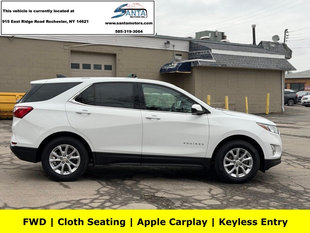 17" Aluminum Wheels, 2 Rear USB Charging-Only Ports, 2 USB Ports & Auxiliary Input Jack, 2-Way Power Driver Lumbar Control Seat Adjuster, 3.50 Final Drive Axle Ratio, 4-Wheel Disc Brakes, 6 Speaker Audio System Feature, 6 Speakers, 8-Way Power Driver Seat Adjuster, ABS brakes, Air Conditioning, Alloy wheels, AM/FM radio: SiriusXM, Apple CarPlay/Android Auto, Bluetooth® For Phone, Brake assist, Bumpers: body-color, Compass, Delay-off headlights, Driver door bin, Driver vanity mirror, Dual front impact airbags, Dual front side impact airbags, Electronic Stability Control, Emergency communication system: OnStar and Chevrolet connected services capable, Four wheel independent suspension, Front anti-roll bar, Front Bucket Seats, Front Center Armrest, Front Passenger 4-Way Manual Seat Adjuster, Front reading lights, Fully automatic headlights, Heated door mirrors, High-Intensity Discharge Headlights, Illuminated entry, Low tire pressure warning, Occupant sensing airbag, Outside temperature display, Overhead airbag, Overhead console, Panic alarm, Passenger door bin, Passenger vanity mirror, Power door mirrors, Power driver seat, Power steering, Power windows, Preferred Equipment Group 1LT, Premium audio system: Chevrolet MyLink, Premium Cloth Seat Trim, Radio data system, Radio: Chevrolet Infotainment 3 System w/AM/FM, Rear anti-roll bar, Rear reading lights, Rear seat center armrest, Rear window defroster, Rear window wiper, Remote keyless entry, Security system, SiriusXM Radio, Speed control, Speed-sensing steering, Split folding rear seat, Spoiler, Steering wheel mounted audio controls, Tachometer, Telescoping steering wheel, Tilt steering wheel, Traction control, Trip computer, Variably intermittent wipers. Summit White 2019 Chevrolet Equinox LT FWD 6-Speed Automatic Electronic with Overdrive 1.5L DOHC