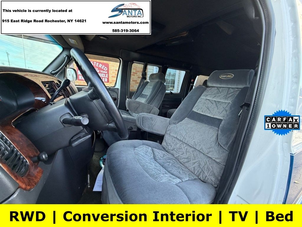 Magnum 5.9L V8 SMPI, 3.55 Axle Ratio, 6 Speakers, ABS brakes, AM/FM Cassette Radio, AM/FM radio, Cassette, Dual front impact airbags, Front anti-roll bar, Front Bucket Seats, Front wheel independent suspension, Power steering, Sport steering wheel, Variably intermittent wipers, Voltmeter, Magnum 5.9L V8 SMPI. White 2002 Dodge Ram Van 1500 Conversion RWD 4-Speed Automatic Magnum 5.9L V8 SMPI