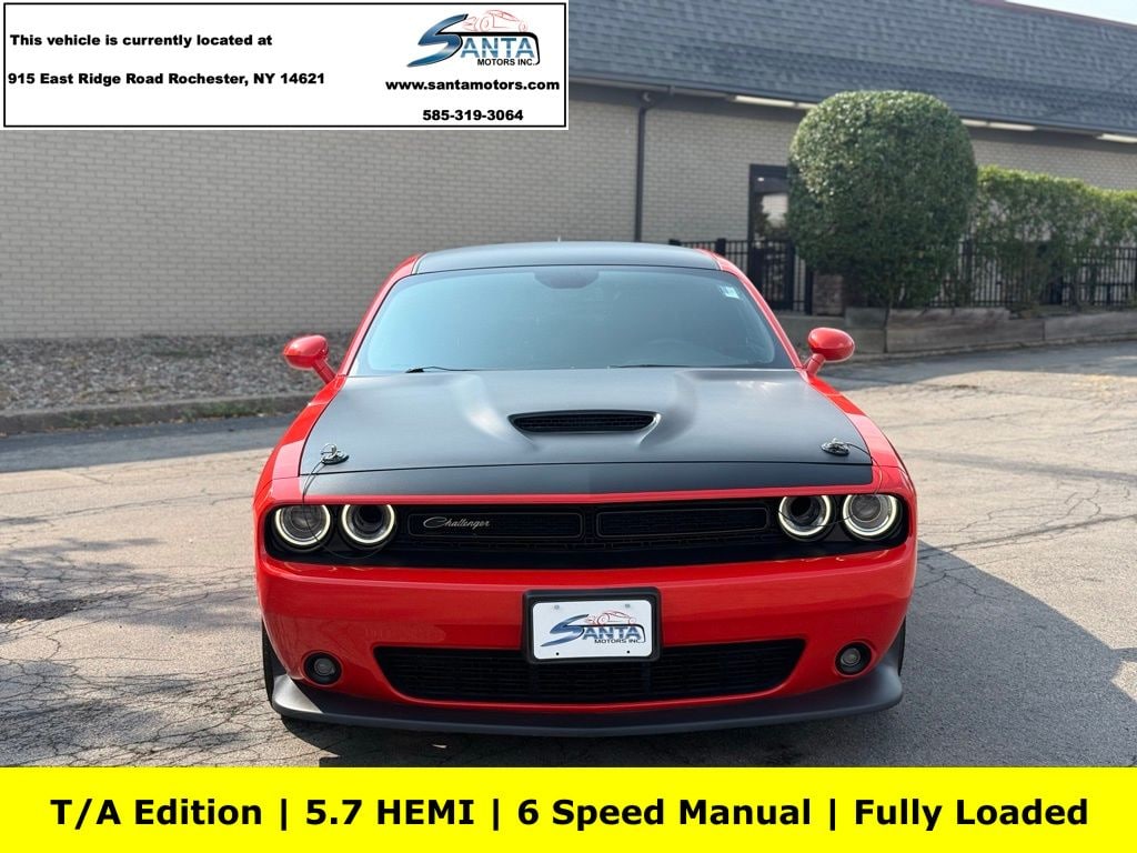 4-Wheel Disc Brakes, 4G LTE Wi-Fi Hot Spot, 6 Speakers, 8.4" Touchscreen Display, ABS brakes, Air Conditioning, Alloy wheels, AM/FM radio, Anti-whiplash front head restraints, Apple CarPlay, Apple CarPlay/Android Auto, Auto-dimming Rear-View mirror, Automatic temperature control, Blind Spot & Cross Path Detection, Brake assist, Bumpers: body-color, Challenger Script Grille Badge, Compass, Delay-off headlights, Door Trim Panel w/Ambient Lighting, Driver Convenience Group, Driver door bin, Driver vanity mirror, Dual front impact airbags, Dual front side impact airbags, Electronic Stability Control, For Details, Visit DriveUconnect.com, Four wheel independent suspension, Front anti-roll bar, Front Bucket Seats, Front Center Armrest, Front dual zone A/C, Front fog lights, Front reading lights, Fully automatic headlights, Garage door transmitter, Google Android Auto, GPS Antenna Input, HD Radio, Heated door mirrors, High-Intensity Discharge Headlamps, Houndstooth Cloth Performance Seats, Illuminated entry, Integrated Voice Command w/Bluetooth, Leather Shift Knob, Low tire pressure warning, Media Hub (2 USB, AUX), MOPAR Black Hood Pin Kit, Outside temperature display, Overhead airbag, Overhead console, Panic alarm, ParkView Rear Back-Up Camera, Passenger door bin, Passenger vanity mirror, Plus Package, Power door mirrors, Power driver seat, Power Multi-Function Foldaway Mirrors, Power steering, Power windows, Quick Order Package 22H R/T, Radio data system, Radio: Uconnect 4 w/7" Display, Radio: Uconnect 4C w/8.4" Display, Rear anti-roll bar, Rear reading lights, Rear seat center armrest, Rear window defroster, Remote keyless entry, Rhombi 2-Pc Wheel Center Cap, Rhombi Illum Air Catcher Headlamp, Satin Wrap Roof/Decklid, Security system, SiriusXM Satellite Radio, Speed control, Speed-sensing steering, Split folding rear seat, Spoiler, Sport steering wheel, Steering wheel mounted audio controls, T/A Bodyside Stripe Delete, T/A Package, Tachometer, Telescoping steering wheel, Tilt steering wheel, Traction control, Trip computer, USB Host Flip, Variably intermittent wipers, Wheels: 20" x 8.0" Granite Crystal Aluminum, Wheels: 20" x 9.0" Forged/Painted Aluminum. Go Mango 2019 Dodge Challenger R/T RWD Tremec 6-Speed Manual HEMI 5.7L V8 VVT