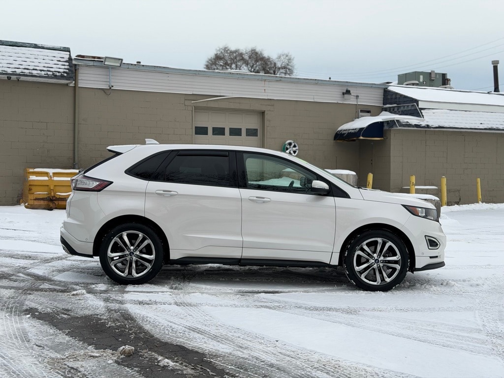 AWD, 12 Speakers, 4-Wheel Disc Brakes, ABS brakes, Air Conditioning, Alloy wheels, AM/FM radio: SiriusXM, AM/FM Stereo w/Single CD Player, Auto-Dimming Driver's Sideview Mirror, Auto-dimming Rear-View mirror, Automatic temperature control, Axle Ratio: 3.39, BLIS Blind Spot Information System, Brake assist, Bumpers: body-color, CD player, Cold Weather Package, Compass, Delay-off headlights, Driver door bin, Driver vanity mirror, Dual front impact airbags, Dual front side impact airbags, Electronic Stability Control, Emergency communication system, Enhanced Active Park Assist System, Equipment Group 401A, Exterior Parking Camera Rear, Four wheel independent suspension, Front & Rear All-Weather Floor Mats, Front 180 Degree Camera, Front anti-roll bar, Front Bucket Seats, Front Center Armrest w/Storage, Front dual zone A/C, Front reading lights, Fully automatic headlights, Garage door transmitter, Heated door mirrors, Heated front seats, Heated Rear-Seats, Heated Steering Wheel, Heated/Cooled Front Seats, HID Projector-Style Headlamps w/Auto High Beams, Illuminated entry, Knee airbag, Lane-Keeping System, Leather Shift Knob, Low tire pressure warning, Memory seat, Occupant sensing airbag, Outside temperature display, Overhead airbag, Overhead console, Panic alarm, Panoramic Vista Roof, Passenger door bin, Passenger vanity mirror, Perforated Leather-Trimmed Heated Sport Buckets, Power Converter 110V Outlet, Power door mirrors, Power driver seat, Power Liftgate, Power passenger seat, Power steering, Power windows, Premium audio system: Sony, Radio: AM/FM Stereo w/Single CD/Navigation, Rain-Sensing Wipers, Rear anti-roll bar, Rear Parking Sensors, Rear reading lights, Rear seat center armrest, Rear window defroster, Rear window wiper, Remote keyless entry, Remote Start System, Security system, SiriusXM Radio, SiriusXM Traffic & Travel Link, Speed control, Speed-sensing steering, Speed-Sensitive Wipers, Split folding rear seat, Spoiler, Steering wheel memory, Steering wheel mounted audio controls, SYNC 3, Tachometer, Technology Package, Telescoping steering wheel, Tilt steering wheel, Traction control, Trip computer, Turn signal indicator mirrors, Variably intermittent wipers, Wheels: 20" Polished w/Magn Low Gloss Ptd Pockets, AWD. White Platinum Clearcoat Metallic 2016 Ford Edge Sport AWD 6-Speed Automatic 2.7L V6 EcoBoost