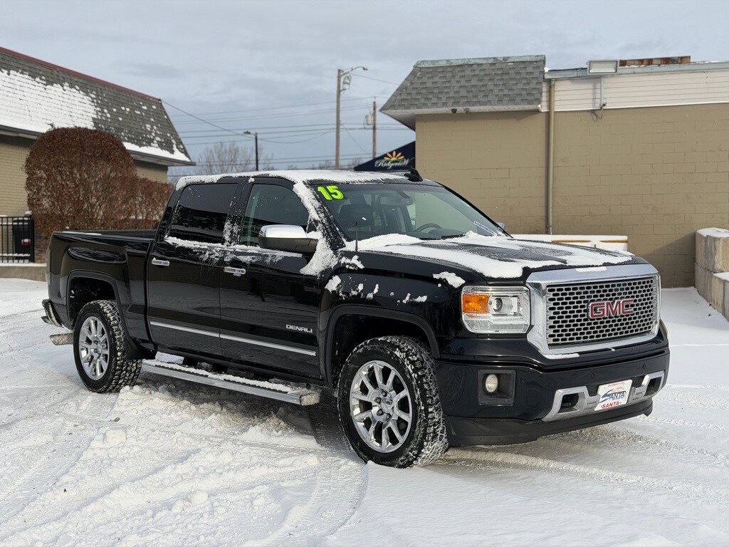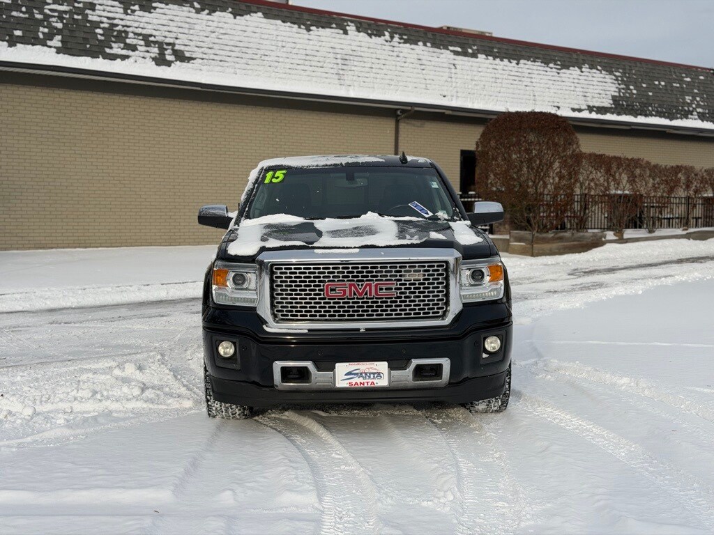6-Speed Automatic Electronic with Overdrive, 4WD, Jet Black Leather, 110-Volt AC Power Outlet, 150 Amp Alternator, 1st & 2nd Row Color-Keyed Carpeted Floor Mats, 3.42 Rear Axle Ratio, 4-Wheel Disc Brakes, 6" Rectangular Chromed Tubular Assist Steps, 7 Speakers, 8" Multi-Color Customizable Driver Display, ABS brakes, Adjustable pedals, Air Conditioning, Alloy wheels, AM/FM radio: SiriusXM, Auto-dimming door mirrors, Auto-Dimming Inside Rear-View Mirror, Auto-dimming Rear-View mirror, Automatic temperature control, Body-Color Front Bumper, Bodyside moldings, Bose Speaker System, Brake assist, Bumpers: body-color, CD player, Chrome Bodyside Moldings, Chrome Door Handles, Chrome Mirror Caps, Chrome wheels, Color-Keyed Carpeting Floor Covering, Compass, Deep-Tinted Glass, Delay-off headlights, Driver & Front Passenger Illuminated Vanity Mirrors, Driver door bin, Driver vanity mirror, Dual front impact airbags, Dual front side impact airbags, Dual-Zone Automatic Climate Control, Electric Rear-Window Defogger, Electronic Autotrac Transfer Case, Electronic Stability Control, Emergency communication system: OnStar Directions & Connections, Exterior Parking Camera Rear, EZ Lift & Lower Tailgate, Floor Mounted Console, Front anti-roll bar, Front Center Armrest w/Storage, Front dual zone A/C, Front fog lights, Front Frame-Mounted Black Recovery Hooks, Front Full Feature Power Reclining Bucket Seats, Front Halogen Fog Lamps, Front reading lights, Front wheel independent suspension, Fully automatic headlights, Garage door transmitter: HomeLink, Heated & Cooled Front Bucket Seats, Heated door mirrors, Heated front seats, Illuminated entry, Leather Wrapped Steering Wheel, Low tire pressure warning, MagneRide Magnetic Ride Control Suspension, Manual Tilt/Telescoping Steering Column, Memory seat, Navigation System, Occupant sensing airbag, OnStar 6 Months Directions & Connections Plan, OnStar w/4G LTE, Outside temperature display, Overhead airbag, Overhead console, Panic alarm, Passenger door bin, Passenger vanity mirror, Perforated Leather Appointed Seat Trim, Polished Exhaust Tip, Power Adjustable Pedals, Power door mirrors, Power driver seat, Power Folding & Adjustable Heated Outside Mirrors, Power passenger seat, Power Sliding Rear Window, Power steering, Power windows, Power Windows w/Driver Express Up & Down, Preferred Equipment Group 5SA, Premium audio system: IntelliLink, Radio data system, Radio: AM/FM Stereo w/8" Diagonal Color Touch Nav., Rear 60/40 Folding Bench Seat (Folds Up), Rear Body-Color Bumper w/Bumper CornerSteps, Rear reading lights, Rear seat center armrest, Rear step bumper, Rear Vision Camera w/Dynamic Guide Lines, Rear Wheelhouse Liners, Rear window defroster, Remote Keyless Entry, Remote keyless entry, Remote Vehicle Starter System, Security system, Single Slot CD/MP3 Player, SiriusXM Satellite Radio, Speed control, Speed-sensing steering, Split folding rear seat, Steering Wheel Audio Controls, Steering wheel mounted audio controls, Tachometer, Telescoping steering wheel, Theft Deterrent System (Unauthorized Entry), Tilt steering wheel, Traction control, Trailering Equipment, Trip computer, Turn signal indicator mirrors, Ultrasonic Front & Rear Park Assist, Universal Home Remote, Variably intermittent wipers, Ventilated front seats, Voltmeter, Wheels: 20" x 9" Chrome (4) (DISC), Wheels: 20" x 9" Ultra Bright Machined Aluminum, 6-Speed Automatic Electronic with Overdrive, 4WD, Jet Black Leather. Onyx Black 2015 GMC Sierra 1500 Denali 4WD 6-Speed Automatic Electronic with Overdrive EcoTec3 5.3L V8