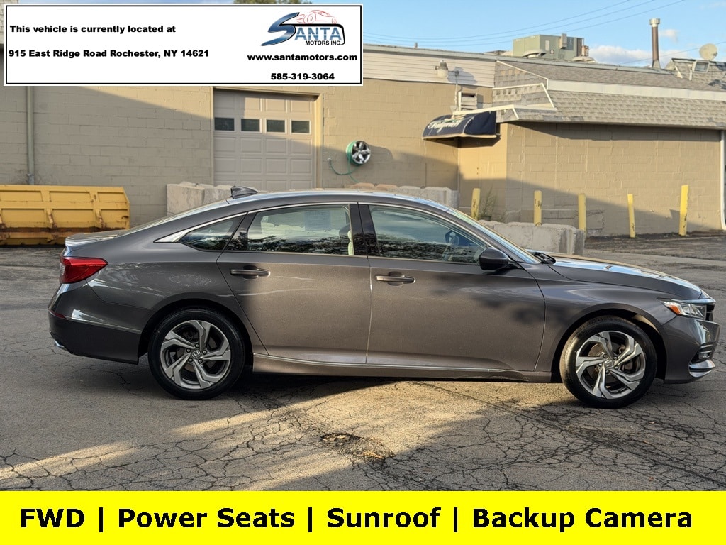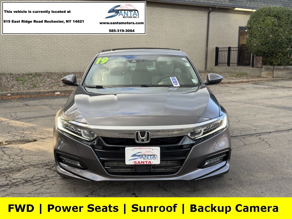17" Machine-Finished Alloy Wheels, 4-Wheel Disc Brakes, 8 Speakers, ABS brakes, Air Conditioning, Alloy wheels, AM/FM radio: SiriusXM, Apple CarPlay/Android Auto, Auto High-beam Headlights, Automatic temperature control, Blind Spot Information (BSI) System warning, Brake assist, Bumpers: body-color, Cloth Seat Trim, Delay-off headlights, Driver door bin, Driver vanity mirror, Dual front impact airbags, Dual front side impact airbags, Electronic Stability Control, Emergency communication system: HondaLink, Exterior Parking Camera Rear, Forward collision: Collision Mitigation Braking System (CMBS) + FCW mitigation, Four wheel independent suspension, Front anti-roll bar, Front Bucket Seats, Front Center Armrest, Front dual zone A/C, Front fog lights, Front reading lights, Fully automatic headlights, Heated door mirrors, Heated Front Bucket Seats, Heated front seats, Illuminated entry, Knee airbag, Low tire pressure warning, Occupant sensing airbag, Outside temperature display, Overhead airbag, Overhead console, Panic alarm, Passenger door bin, Passenger vanity mirror, Power door mirrors, Power driver seat, Power moonroof, Power steering, Power windows, Radio data system, Radio: 180-Watt AM/FM/HD/SiriusXM Audio System, Rear anti-roll bar, Rear seat center armrest, Rear window defroster, Remote keyless entry, Security system, Speed control, Speed-sensing steering, Speed-Sensitive Wipers, Split folding rear seat, Steering wheel mounted audio controls, Tachometer, Telescoping steering wheel, Tilt steering wheel, Traction control, Trip computer, Variably intermittent wipers. Gray 2019 Honda Accord EX FWD CVT 1.5T I4 DOHC 16V Turbocharged VTEC