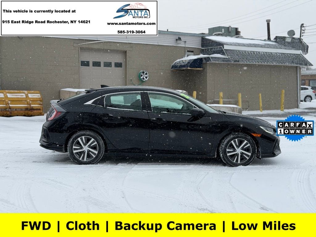 16" Alloy Wheels, 4 Speakers, 4-Wheel Disc Brakes, ABS brakes, Adaptive Cruise Control: Adaptive Cruise Control (ACC) with Low-Speed Follow, Air Conditioning, Alloy wheels, AM/FM radio, Auto High-beam Headlights, Automatic temperature control, Brake assist, Bumpers: body-color, Delay-off headlights, Driver door bin, Driver vanity mirror, Dual front impact airbags, Dual front side impact airbags, Electronic Stability Control, Exterior Parking Camera Rear, Fabric Seating Surfaces, Forward collision: Collision Mitigation Braking System (CMBS) + FCW mitigation, Four wheel independent suspension, Front anti-roll bar, Front Bucket Seats, Front Center Armrest, Front reading lights, Fully automatic headlights, Illuminated entry, Lane departure: Lane Keeping Assist System (LKAS) active, Low tire pressure warning, Occupant sensing airbag, Outside temperature display, Overhead airbag, Panic alarm, Passenger door bin, Passenger vanity mirror, Power door mirrors, Power steering, Power windows, Radio data system, Radio: 160-Watt Audio System, Rear anti-roll bar, Rear window defroster, Rear window wiper, Reclining Front Bucket Seats, Remote keyless entry, Security system, Speed control, Speed-sensing steering, Split folding rear seat, Spoiler, Steering wheel mounted audio controls, Tachometer, Telescoping steering wheel, Tilt steering wheel, Traction control, Trip computer. Black 2020 Honda Civic LX FWD CVT 1.5L I4 DOHC 16V