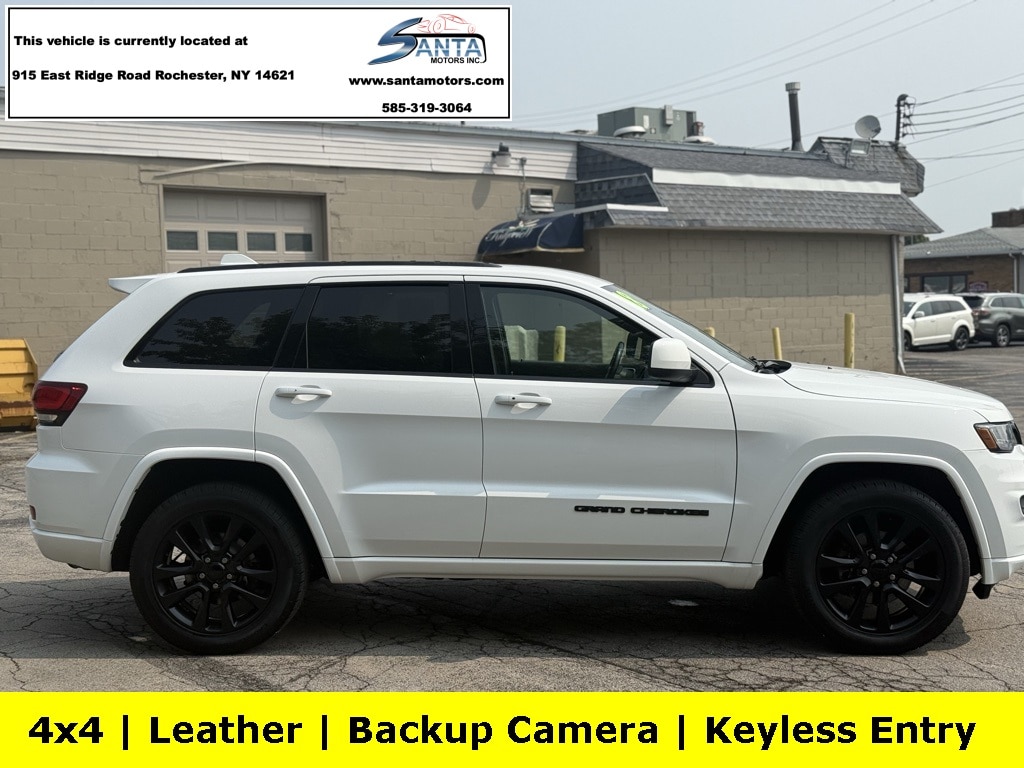 4WD, 1-Year SiriusXM Guardian Trial, 1-Year SiriusXM Radio Service, 115V Auxiliary Power Outlet, 3.45 Rear Axle Ratio, 4-Wheel Disc Brakes, 5-Year SiriusXM Traffic Service, 5-Year SiriusXM Travel Link Service, 6 Speakers, 8.4" Touchscreen Display, ABS brakes, Air Conditioning, Alloy wheels, Altitude Grille, Altitude IV Package, AM/FM radio, Anti-whiplash front head restraints, Apple CarPlay, Apple CarPlay/Android Auto, Auto-Dimming Rear-View Mirror, Automatic temperature control, Black Suede Seats w/Black Stitching, Body Color Claddings, Body Color Fascia, Body Color Shark Fin Antenna, Brake assist, Bumpers: body-color, Cargo Compartment Cover, Cloth Bucket Seats, Compass, Dark Day Light Opening Moldings, Dark Headlamp Bezel Finish, Dark Lens Taillamps, Delay-off headlights, Delete Laredo Badge, Driver door bin, Driver vanity mirror, Dual front impact airbags, Dual front side impact airbags, Electronic Stability Control, For Details Visit DriveUconnect.com, Four wheel independent suspension, Front Accent/Body Color Fascia, Front anti-roll bar, Front Bucket Seats, Front Center Armrest w/Storage, Front dual zone A/C, Front fog lights, Front License Plate Bracket, Front reading lights, Fully automatic headlights, Gloss Black Rear Fascia Applique, Google Android Auto, GPS Antenna Input, GPS Navigation, HD Radio, Heated door mirrors, Illuminated entry, Integrated Voice Command w/Bluetooth, Jeep Black Gloss Badging, Knee airbag, Leather Shift Knob, Low tire pressure warning, Normal Duty Suspension, Occupant sensing airbag, Outside temperature display, Overhead airbag, Overhead console, Panic alarm, ParkView Rear Back-Up Camera, Passenger door bin, Passenger vanity mirror, Power 4-Way Driver Lumbar Adjust, Power 8-Way Driver/Manual Passenger Seat, Power door mirrors, Power Liftgate, Power steering, Power windows, Quick Order Package 2BZ Altitude, Radio data system, Radio: Uconnect 4 w/7" Display, Radio: Uconnect 4C Nav w/8.4" Display, Rear Accent/Body Color Fascia, Rear anti-roll bar, Rear Fascia Black MIC Step Pad, Rear reading lights, Rear seat center armrest, Rear window defroster, Rear window wiper, Remote keyless entry, Security & Convenience Group, Security Alarm, Single Exhaust w/Bright Tip, SiriusXM Satellite Radio, SiriusXM Traffic Plus, SiriusXM Travel Link, Speed control, Speed-Sensitive Wipers, Split folding rear seat, Spoiler, Steering Wheel Mounted Audio Controls, Steering wheel mounted audio controls, Tachometer, Telescoping steering wheel, Tilt steering wheel, Traction control, Trip computer, Universal Garage Door Opener, USB Host Flip, Variably intermittent wipers, Wheels: 17" x 8.0" Silver Aluminum, Wheels: 20" x 8.0" Gloss Black Aluminum, 4WD. Bright White Clearcoat 2018 Jeep Grand Cherokee Altitude 4WD 8-Speed Automatic 3.6L V6 24V VVT