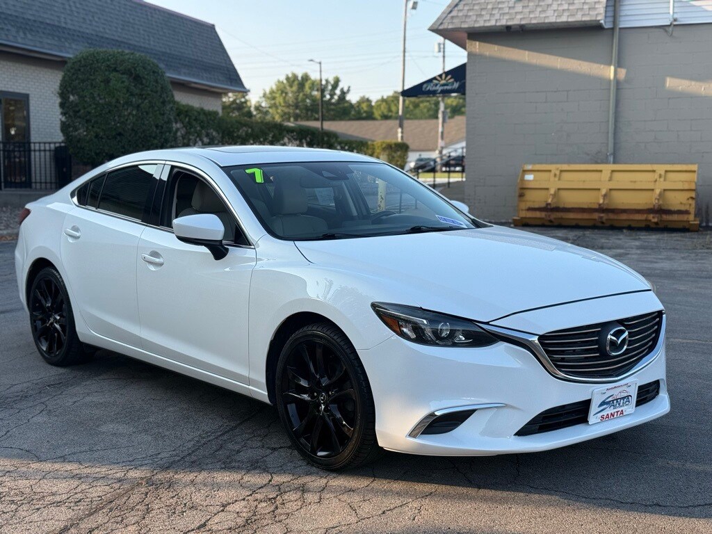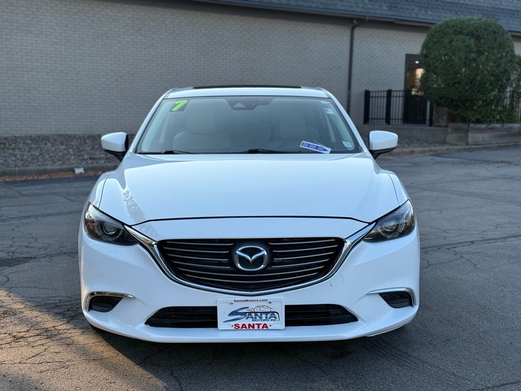 19" Alloy Wheels, 4-Wheel Disc Brakes, 6 Speakers, ABS brakes, Adaptive Front-Lighting System (AFS), Air Conditioning, Alloy wheels, AM/FM radio, Anti-whiplash front head restraints, Auto-Dimming Driver's Side Exterior Mirror, Auto-Dimming Rear View Mirror w/HomeLink, Automatic temperature control, Bose Premium 11-Speaker Sound System, Brake assist, Bumpers: body-color, CD player, Delay-off headlights, Driver door bin, Driver vanity mirror, Dual front impact airbags, Dual front side impact airbags, Electronic Stability Control, Emergency communication system, Exterior Parking Camera Rear, Four wheel independent suspension, Front anti-roll bar, Front Bucket Seats, Front Center Armrest, Front dual zone A/C, Front reading lights, Fully automatic headlights, Heated Exterior Side Mirrors, Illuminated entry, Leather Shift Knob, Leatherette Seat Trim, LED Headlights w/Auto Leveling, Low tire pressure warning, Occupant sensing airbag, Outside temperature display, Overhead airbag, Overhead console, Panic alarm, Passenger door bin, Passenger vanity mirror, Power door mirrors, Power driver seat, Power Sliding Moonroof, Power steering, Power windows, Radio data system, Radio: AM/FM/CD/MP3/AUX 6-Speaker Audio & HD Radio, Rain sensing wipers, Rear anti-roll bar, Rear reading lights, Rear seat center armrest, Rear window defroster, Remote keyless entry, SiriusXM Satellite Radio, Snowflake White Pearl Mica Paint Charge, Speed control, Speed-sensing steering, Split folding rear seat, Steering wheel mounted audio controls, Tachometer, Telescoping steering wheel, Tilt steering wheel, Touring Bose/Moonroof/Satellite Radio Package, Touring Premium Package, Traction control, Trip computer, Turn signal indicator mirrors, Variably intermittent wipers. Snowflake White Pearl 2017 Mazda Mazda6 Touring FWD 6-Speed Automatic SKYACTIV®-G 2.5L I4 DOHC 16V