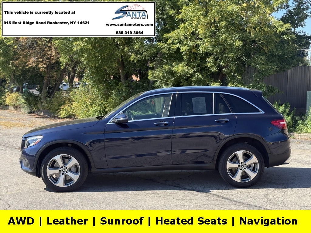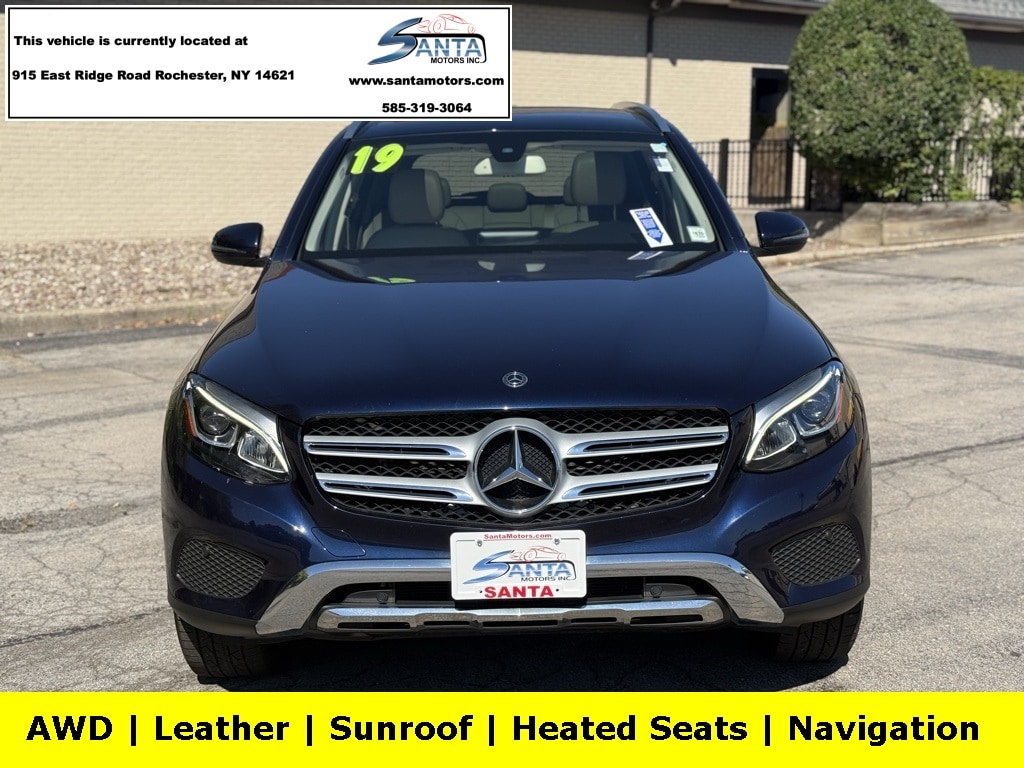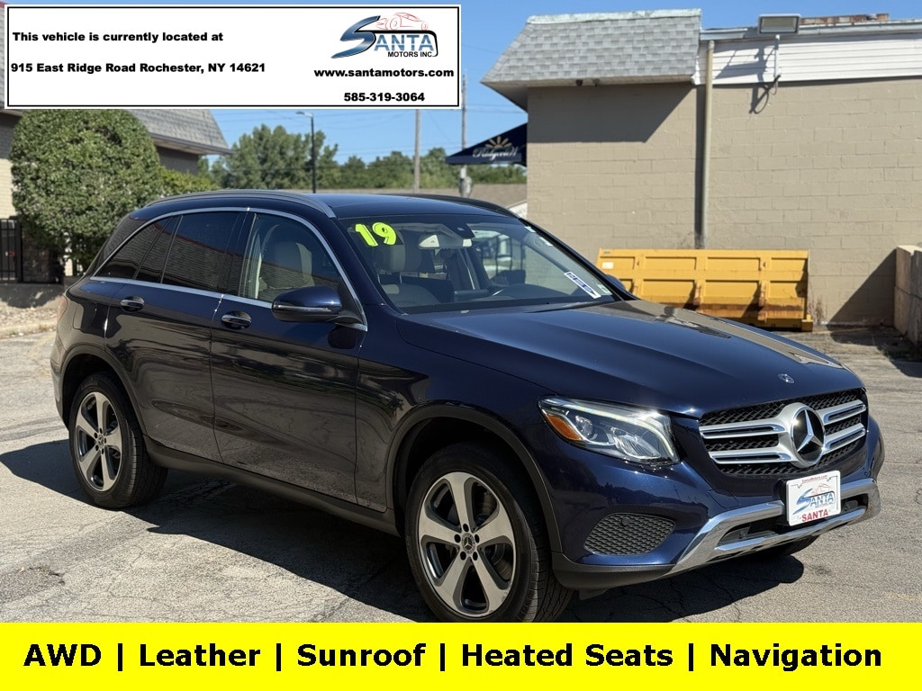 4-Wheel Disc Brakes, 6 Speakers, ABS brakes, Air Conditioning, Alloy wheels, AM/FM radio, Anti-whiplash front head restraints, Audio 20 w/Single CD, Auto tilt-away steering wheel, Auto-dimming door mirrors, Auto-dimming Rear-View mirror, Automatic temperature control, Axle Ratio: TBA, Brake assist, Bumpers: body-color, CD player, Child-Seat-Sensing Airbag, Delay-off headlights, Driver door bin, Driver vanity mirror, Dual front impact airbags, Dual front side impact airbags, Electrically Adjustable Passenger Seat, Electronic Stability Control, Emergency communication system: mbrace, Exterior Parking Camera Rear, Four wheel independent suspension, Front anti-roll bar, Front Bucket Seats, Front Center Armrest, Front dual zone A/C, Front reading lights, Fully automatic headlights, Garage door transmitter: Homelink, Genuine wood dashboard insert, Genuine wood door panel insert, Heated door mirrors, Heated Front Bucket Seats, Heated front seats, Illuminated entry, Knee airbag, Leather steering wheel, Low tire pressure warning, MB-Tex Upholstery, Memory seat, Occupant sensing airbag, Outside temperature display, Overhead airbag, Overhead console, Panic alarm, Passenger door bin, Passenger vanity mirror, Power door mirrors, Power driver seat, Power Liftgate, Power passenger seat, Power steering, Power windows, Premium audio system: COMAND®, Radio data system, Rain sensing wipers, Rear anti-roll bar, Rear fog lights, Rear reading lights, Rear seat center armrest, Rear window defroster, Rear window wiper, Remote keyless entry, Roof rack: rails only, Security system, Speed control, Speed-sensing steering, Split folding rear seat, Steering wheel memory, Steering wheel mounted audio controls, Tachometer, Telescoping steering wheel, Tilt steering wheel, Traction control, Trip computer, Turn signal indicator mirrors, Variably intermittent wipers, Weather band radio, Wheels: 18" 5-Spoke (R31). Blue 2019 Mercedes-Benz GLC GLC 300 4MATIC® 4MATIC® 9-Speed Automatic I4