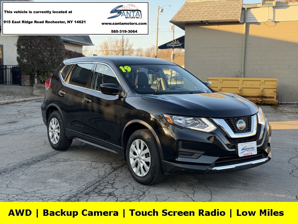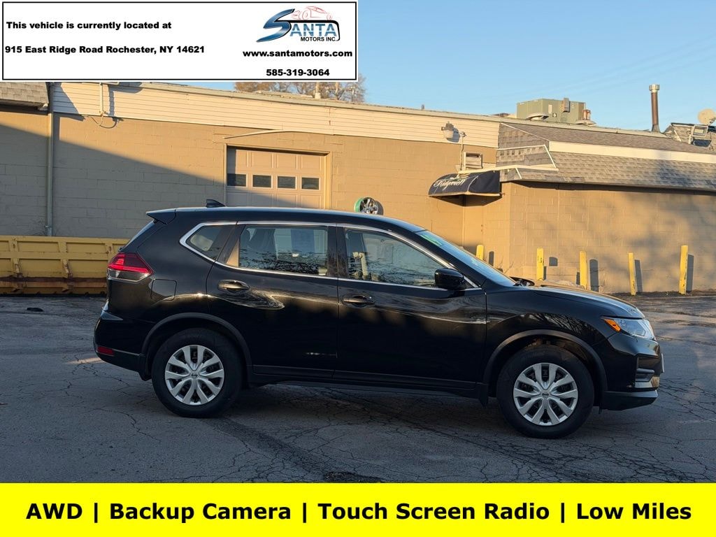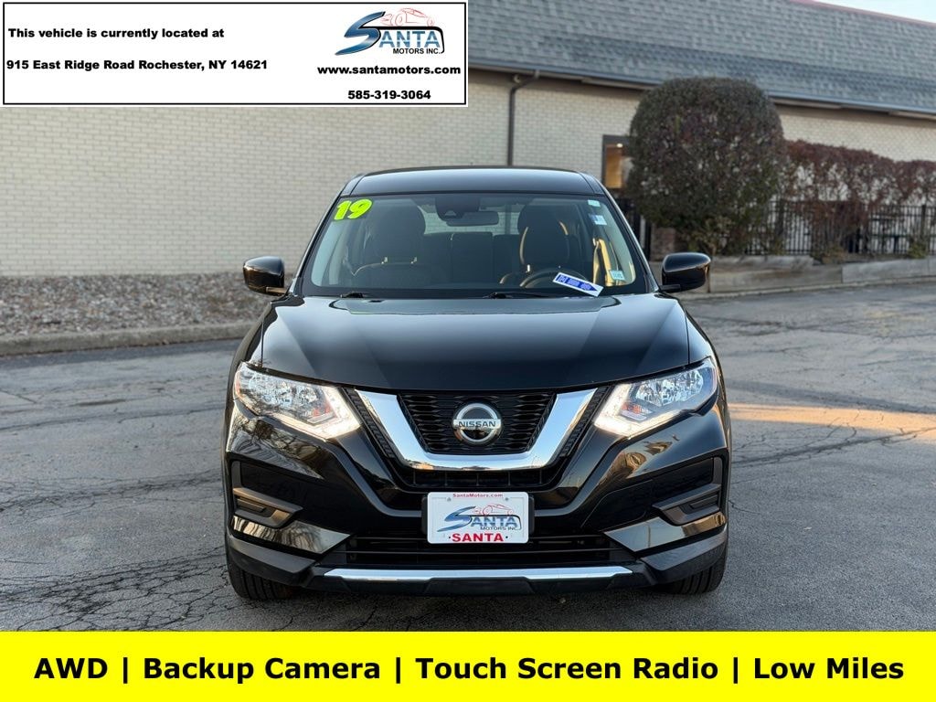 AWD, 4 Speakers, 4-Wheel Disc Brakes, 6.386 Axle Ratio, ABS brakes, Air Conditioning, AM/FM radio: SiriusXM, Anti-whiplash front head restraints, Auto High-beam Headlights, Black Splash Guards (Set of 4), Blind Spot Warning, Brake assist, Bumpers: body-color, CD player, Chrome Rear Bumper Protector, Cloth Seat Trim, Delay-off headlights, Driver door bin, Driver vanity mirror, Dual front impact airbags, Dual front side impact airbags, Electronic Stability Control, First Aid Kit, Floor Mats & 2-PC Cargo Area Protector, Four wheel independent suspension, Front anti-roll bar, Front Bucket Seats, Front Center Armrest w/Storage, Front reading lights, Fully automatic headlights, Illuminated entry, Low tire pressure warning, NissanConnect featuring Apple CarPlay and Android Auto, Occupant sensing airbag, Outside temperature display, Overhead airbag, Overhead console, Panic alarm, Passenger door bin, Passenger vanity mirror, Power door mirrors, Power steering, Power windows, Radio data system, Radio: AM/FM/CD/AUX, Rear anti-roll bar, Rear seat center armrest, Rear window defroster, Rear window wiper, Remote keyless entry, Security system, Speed control, Speed-sensing steering, Split folding rear seat, Spoiler, Steering wheel mounted audio controls, Tachometer, Telescoping steering wheel, Tilt steering wheel, Traction control, Trip computer, Variably intermittent wipers, Wheels: 17" Steel w/Full Covers, AWD. Magnetic Black Pearl 2019 Nissan Rogue S AWD CVT with Xtronic 2.5L I4 DOHC 16V