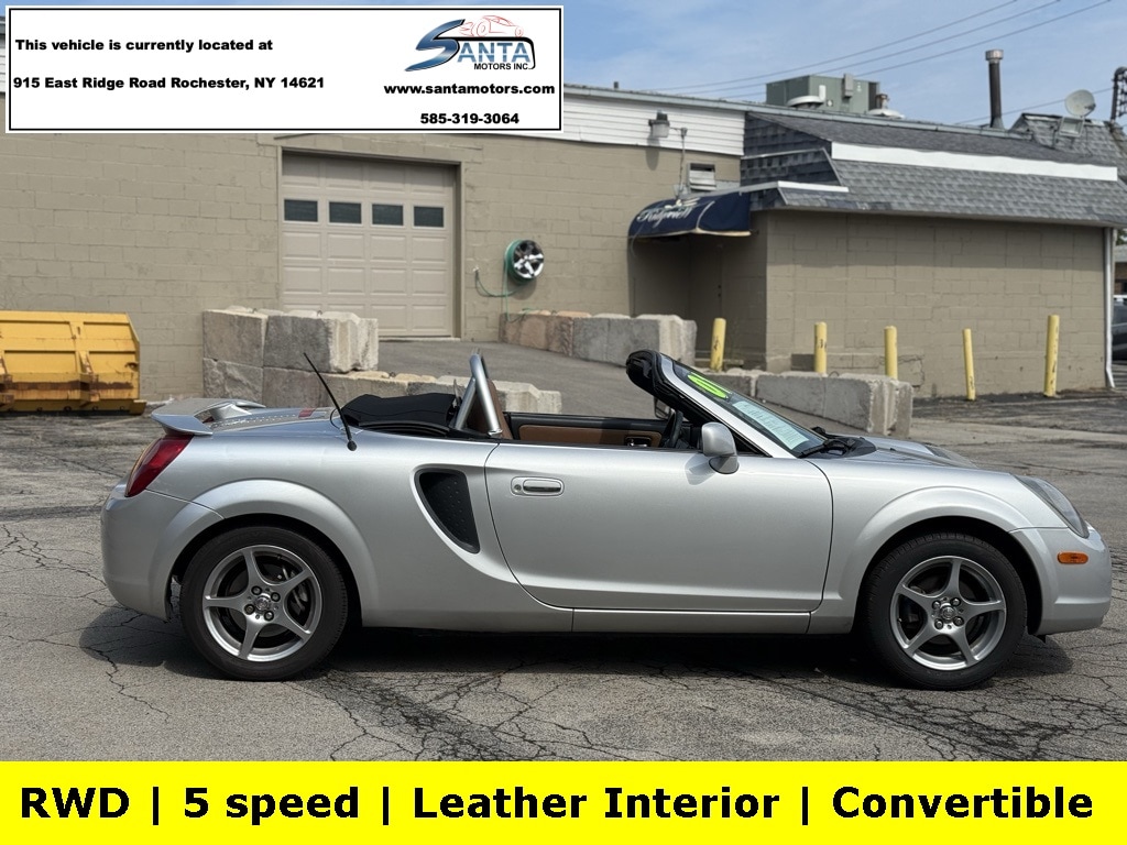 4 Speakers, 4-Wheel Disc Brakes, ABS brakes, Air Conditioning, Alloy wheels, AM/FM radio, Bumpers: body-color, Cassette, CD player, Cloth Seat Trim, Convertible roof lining, Convertible roof wind blocker, Driver door bin, Dual front impact airbags, Four wheel independent suspension, Front anti-roll bar, Front Bucket Seats, Front reading lights, Front Sport Bucket Seats, Fully automatic headlights, Glass rear window, Leather Shift Knob, Leather steering wheel, Passenger cancellable airbag, Passenger door bin, Power door mirrors, Power steering, Power windows, Rear anti-roll bar, Rear window defroster, Tachometer, Tilt steering wheel, Variably intermittent wipers. Silver 2001 Toyota MR2 Spyder RWD 5-Speed Manual with Overdrive 1.8L I4 MPI DOHC