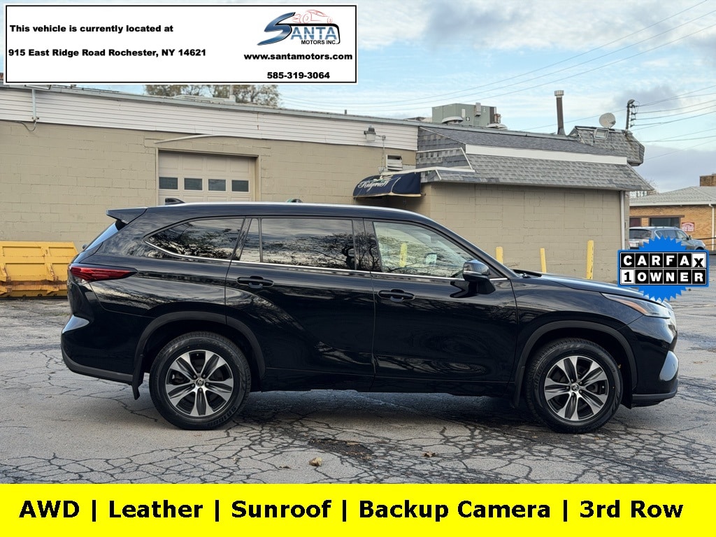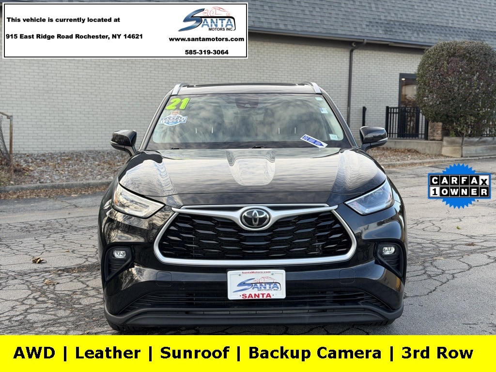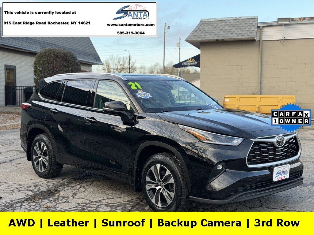 AWD, 18" Machined Alloy Wheels, 3.003 Axle Ratio, 3rd row seats: split-bench, 4-Wheel Disc Brakes, 6 Speakers, ABS brakes, Air Conditioning, Alloy wheels, AM/FM radio: SiriusXM, Apple CarPlay/Android Auto, Auto High-beam Headlights, Auto-dimming Rear-View mirror, Automatic temperature control, Brake assist, Bumpers: body-color, Delay-off headlights, Driver door bin, Driver vanity mirror, Dual front impact airbags, Dual front side impact airbags, Electronic Stability Control, Emergency communication system: Safety Connect with 1-year trial, Exterior Parking Camera Rear, Four wheel independent suspension, Front anti-roll bar, Front Bucket Seats, Front Center Armrest, Front dual zone A/C, Front fog lights, Front reading lights, Fully automatic headlights, Garage door transmitter: HomeLink, Heated door mirrors, Heated Front Bucket Seats, Heated front seats, Illuminated entry, Knee airbag, Leather Shift Knob, Low tire pressure warning, Occupant sensing airbag, Outside temperature display, Overhead airbag, Overhead console, Panic alarm, Passenger door bin, Passenger vanity mirror, Power door mirrors, Power driver seat, Power Liftgate, Power moonroof, Power passenger seat, Power steering, Power windows, Radio: Audio Plus, Rear air conditioning, Rear anti-roll bar, Rear reading lights, Rear window defroster, Rear window wiper, Reclining 3rd row seat, Remote keyless entry, Roof rack: rails only, Security system, SofTex Seat Trim, Speed control, Speed-sensing steering, Split folding rear seat, Spoiler, Steering wheel mounted audio controls, Tachometer, Telescoping steering wheel, Tilt steering wheel, Traction control, Trip computer, Turn signal indicator mirrors, Variably intermittent wipers, AWD. Black 2021 Toyota Highlander XLE AWD 8-Speed Automatic 3.5L V6 DOHC