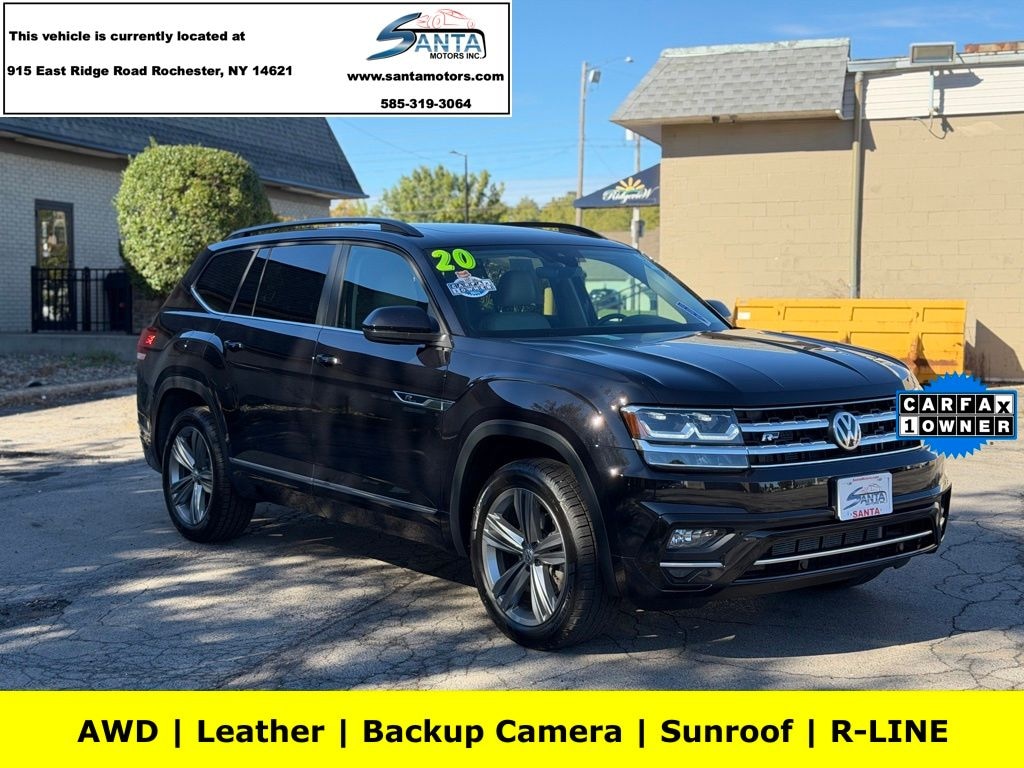 3.60 Axle Ratio, 3rd row seats: split-bench, 4-Wheel Disc Brakes, 6 Speakers, ABS brakes, Active Blind Spot Monitor, Air Conditioning, Alloy wheels, AM/FM radio: SiriusXM, Auto-dimming Rear-View mirror, Automatic temperature control, Brake assist, Bumpers: body-color, Compass, Delay-off headlights, Driver door bin, Driver vanity mirror, Dual front impact airbags, Dual front side impact airbags, Electronic Stability Control, Emergency communication system: VW Car-Net services (capabilities require enrollment or subscription), Exterior Parking Camera Rear, First Aid Kit, Forward collision: FCW w/Autonomous Emergency Braking mitigation, Four wheel independent suspension, Front anti-roll bar, Front Bucket Seats, Front Center Armrest, Front dual zone A/C, Front fog lights, Front reading lights, Heated Comfort Front Bucket Seats, Heated door mirrors, Heated front seats, HomeLink Garage Door Opener, Illuminated entry, Low tire pressure warning, Occupant sensing airbag, Outside temperature display, Overhead airbag, Overhead console, Panic alarm, Panoramic Sunroof, Panoramic Sunroof Package, Passenger door bin, Passenger vanity mirror, Power door mirrors, Power driver seat, Power Liftgate, Power steering, Power windows, Radio data system, Radio: Composition Media w/8.0" Touchscreen, Rain sensing wipers, Rear air conditioning, Rear anti-roll bar, Rear reading lights, Rear seat center armrest, Rear window defroster, Rear window wiper, Remote CD player, Remote keyless entry, Roadside Assistance Kit, Roof rack: rails only, Rubber Mats Kit - Bench Seats, Security system, Speed control, Speed-sensing steering, Split folding rear seat, Spoiler, Sport steering wheel, Standard Suspension, Steering wheel mounted audio controls, Tachometer, Telescoping steering wheel, Tilt steering wheel, Towing Package, Traction control, Trailer Hitch Extras, Trip computer, Trunk Liner w/VW CarGo Blocks, Turn signal indicator mirrors, V-Tex Leatherette Seating Surfaces, Variably intermittent wipers, VW App-Connect (w/Apple CarPlay, Android Auto & MirrorLink), VW Care, Wheels: 20" Twin 5-Spoke Anthracite. Deep Black 2020 Volkswagen Atlas 3.6L V6 SE R-Line AWD 8-Speed Automatic with Tiptronic 3.6L VR6