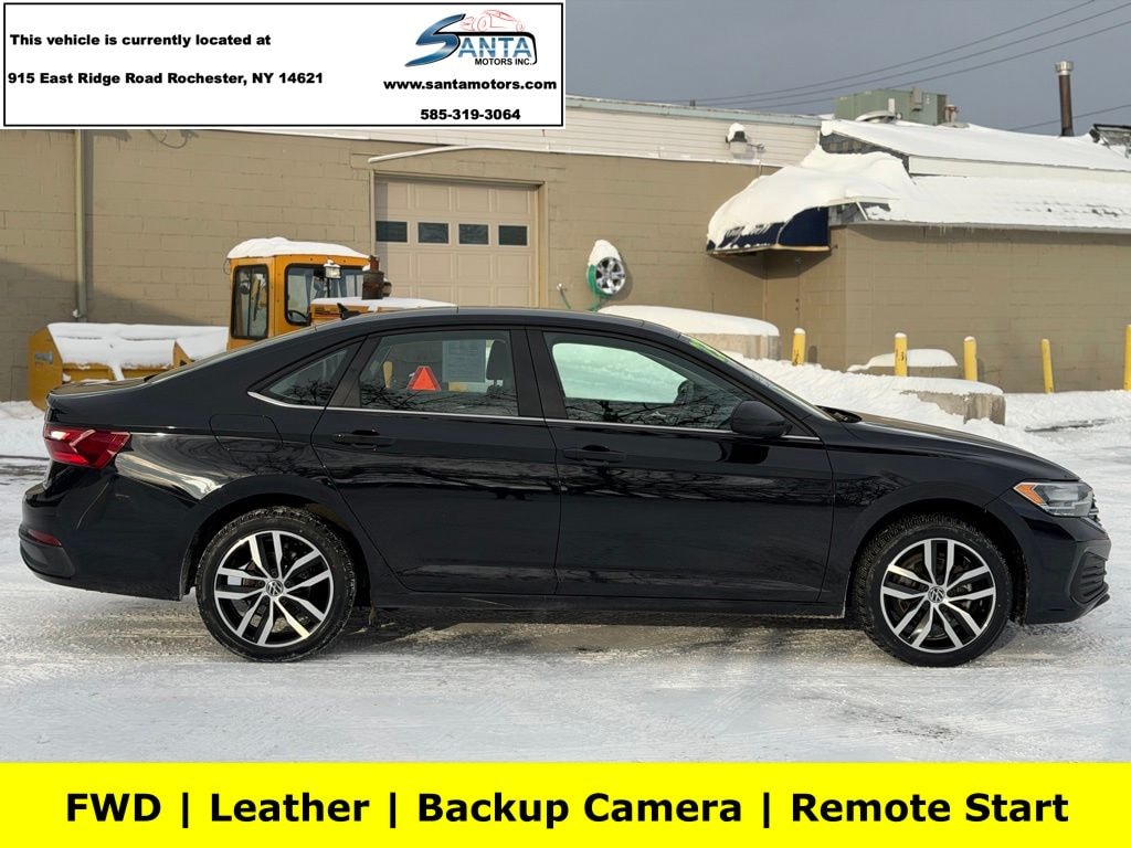 4 Speakers, 4-Wheel Disc Brakes, ABS brakes, Active Blind Spot Monitor, Air Conditioning, Alloy wheels, AM/FM radio, Auto-dimming Rear-View mirror, Automatic temperature control, Brake assist, Bumpers: body-color, Delay-off headlights, Driver door bin, Driver vanity mirror, Dual front impact airbags, Dual front side impact airbags, Electronic Stability Control, Emergency communication system: VW Car-Net Safe & Secure 5-year, Exterior Parking Camera Rear, Front anti-roll bar, Front Bucket Seats, Front Center Armrest, Front dual zone A/C, Front wheel independent suspension, Fully automatic headlights, Heated door mirrors, Heated Front Comfort Sport Seats, Heated front seats, Illuminated entry, Leather Shift Knob, Low tire pressure warning, Occupant sensing airbag, Outside temperature display, Overhead airbag, Overhead console, Panic alarm, Passenger door bin, Passenger vanity mirror, Power door mirrors, Power driver seat, Power steering, Power windows, Radio data system, Radio: MIB3 Composition Color w/6.5" Touchscreen, Rain sensing wipers, Rear anti-roll bar, Rear reading lights, Rear seat center armrest, Rear window defroster, Remote keyless entry, Speed control, Speed-sensing steering, Split folding rear seat, Steering wheel mounted audio controls, Tachometer, Telescoping steering wheel, Tilt steering wheel, Traction control, Trip computer, V-Tex Leatherette Seat Trim, Variably intermittent wipers, Wheels: 17" Twin 5-Spoke Silver Painted Alloy. Black 2023 Volkswagen Jetta 1.5T SE FWD 8-Speed Automatic with Tiptronic 1.5L I-4 DI DOHC Turbocharged
